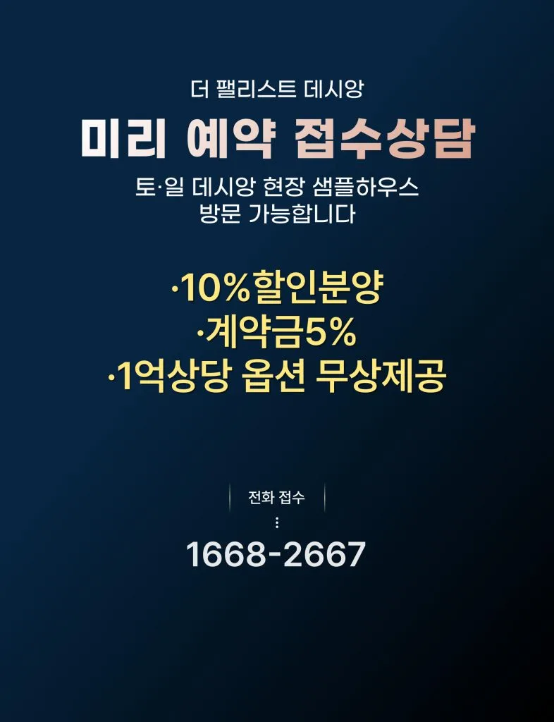 ☰PREMIUM입지환경사업개요단지안내특화시스템UNIT방문예약 이 양식을 작성하려면 브라우저에서 JavaScript를 활성화하십시오. 안내 이용 / 성함 *고객님의 성함을 입력해 주세요연락처 *연락받으실 휴대폰 번호를 입력해 주세요문의내용궁금한 문의사항을 남겨 주세요날짜 / 시간DateTime원하시는 방문날짜를 입력해 주세요개인정보 수집 및 이용 안내 *개인정보처리방침에 동의합니다[개인정보처리방침 보기]문의하기 PREMIUM 입지환경 사업개요 단지안내 특화시스템 UNIT 이 양식을 작성하려면 브라우저에서 JavaScript를 활성화하십시오. / 안내 개인정보 성함 *고객님의 성함을 입력해 주세요연락처 *연락받으실 휴대폰 번호를 입력해 주세요문의내용궁금한 문의사항을 남겨 주세요날짜 / 시간DateTime원하시는 방문날짜를 입력해 주세요개인정보 수집 및 이용 안내 *개인정보처리방침에 동의합니다[개인정보처리방침 보기]문의하기현장명 : 더 팰리스트 데시앙대표번호 : 1668-2667Copyright © 2025 더 팰리스트 데시앙 이 양식을 작성하려면 브라우저에서 JavaScript를 활성화하십시오. 문의내용 및 성함 성함 *고객님의 성함을 입력해 주세요연락처 *연락받으실 휴대폰 번호를 입력해 주세요문의내용궁금한 문의사항을 남겨 주세요날짜 / 시간DateTime원하시는 방문날짜를 입력해 주세요개인정보 수집 및 이용 안내 *개인정보처리방침에 동의합니다[개인정보처리방침 보기]문의하기PREMIUM 입지환경 사업개요 단지안내 특화시스템 UNIT 이 양식을 작성하려면 브라우저에서 JavaScript를 활성화하십시오.성함 *고객님의 성함을 입력해 주세요연락처 *연락받으실 휴대폰 번호를 입력해 주세요 수집 시간 문의내용 문의내용궁금한 문의사항을 남겨 주세요날짜 / 시간DateTime원하시는 방문날짜를 입력해 주세요개인정보 수집 및 이용 안내 *개인정보처리방침에 동의합니다[개인정보처리방침 보기]문의하기현장명 : 더 팰리스트 데시앙대표번호 : 1668-2667Copyright © 2025 더 팰리스트 데시앙